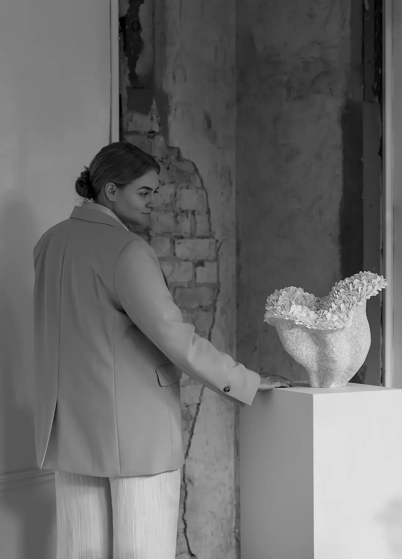 Her work explores the delicate balance between fragility and permanence, softness and solidity — full of texture and depth. Muted tones and rich details evoke an intimate atmosphere, encouraging the viewer to feel rather than fully understand. Echoes of ancient architecture, sacred ruins, and botanical landscapes are distilled into a poetic presence.